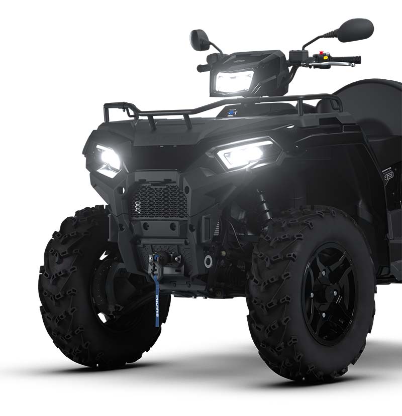 - 3 kjøremoduser: Standard/arbeid/ytelse. 12 V støpsel, ladeport for arbeidslys, hånd- og tommelvarmere inkludert, DEFA-varmer for motorblokk, PIN-aktivert sikkerhetssystem (P.A.S.S.). 1588 kg vinsj med syntetisk tau og NY automatisk stopp. Bagasjebrettforlenger foran, lastekasse, A-armbeskyttere foran og bak, lakkert plast